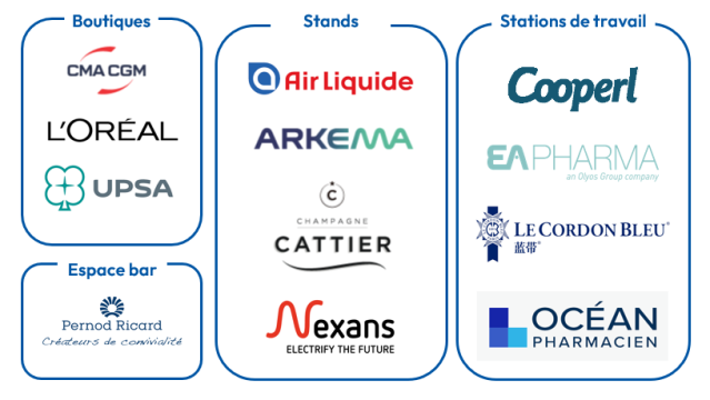 除参展商外,另有27家法国企业及一个大区将其品牌形象与法国国家馆紧密关联。