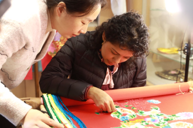 危地马拉网红博主在北京剧装厂体验传统手工刺绣工艺 摄影 曲艺