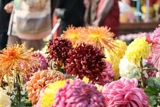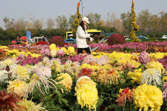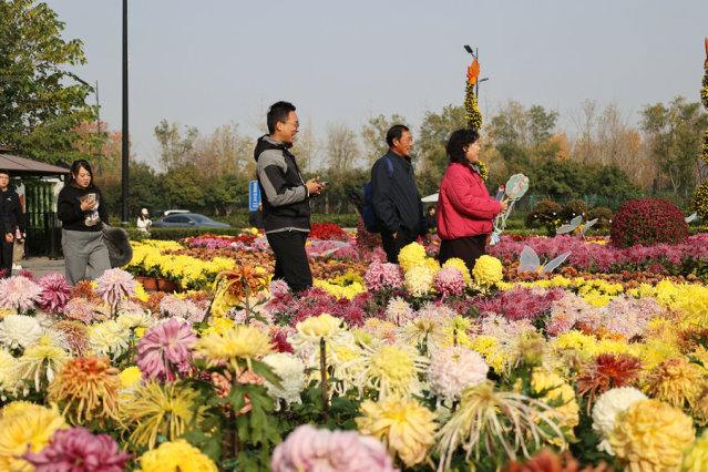11月13日,不少游客来到古城开封游玩赏菊,乐享冬日好时光。全媒体记者 石斐 摄