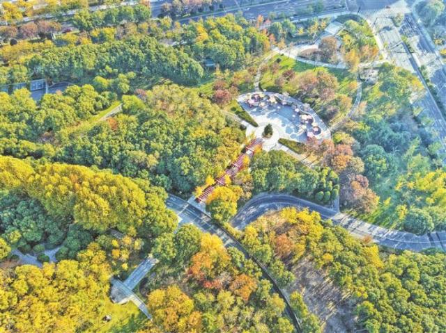 图为近日,空中俯瞰金匮公园,犹如大自然的调色盘,美不胜收。(钦嫣 摄)