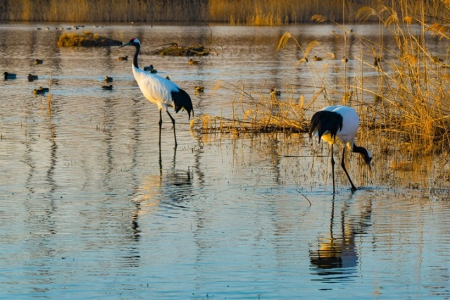 丹顶鹤(学名Grus japonensis),俗称“仙鹤”,是鹤形目鹤科鹤属的大型涉禽,也是东亚特有的珍稀鸟类,被列为国家一级重点保护野生动物,同时入选《濒危野生动植物种国际贸易公约》附录Ⅰ,全球野生种群数量仅约3822只,生存状态为易危。作为典型的湿地指示物种,丹顶鹤对栖息环境有着极高要求,主要栖息于开阔平原、沼泽、湖泊、海边滩涂、芦苇沼泽及河岸湿地等区域,这类生境不仅能为其提供充足的鱼虾、水生昆虫、软体动物等食物,还能满足其筑巢、休憩的需求,是湿地生态系统健康的“晴雨表”。