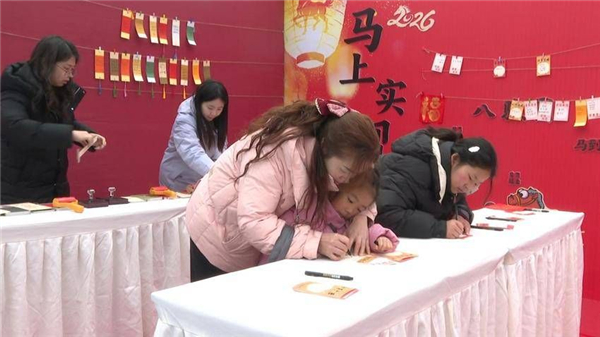 一旁的“巧手拓福”体验区,刘春艳和女儿一起拓印“福”字、写“福”卡,墨香与笑声交织成最美的年味。